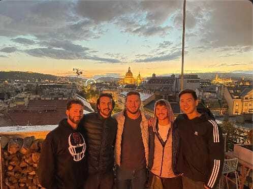 The weather sucked most of the day, so I spent the afternoon hanging out with Collin and Jason at the apartment and doing laundry. I also got a haircut. I have gotten two haircuts in Europe at the same barbershop in Budapest, so I guess thatâs my place. Around sunset, we went to 360 Bar. The weather had cleared up some, and this place had the best views in the city. Jason had a friend from Chile, Tomas, who met us there.