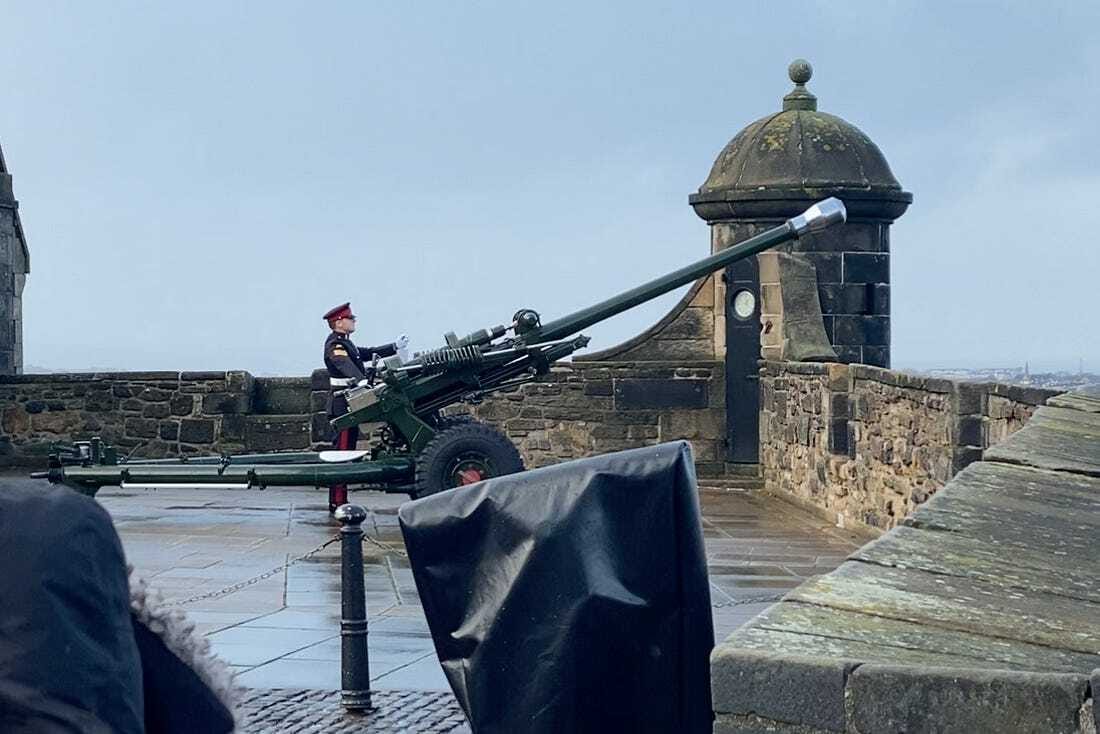 There was a massive gun set up next to the castle, and at 1:00 a soldier fired it. They used to fire it every day at 1:00 to let sailors in the bay know the time.